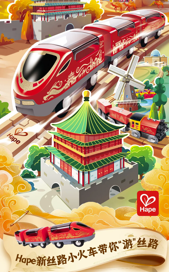 另外,该品牌在大连、郑州、重庆、青岛发起“新丝路行”主题体验活动仍在继续,借用“古丝绸之路”的历史符号,以火车轨道为载体,以新亚欧大陆桥途经的特色城市作为站点,让孩子们沉浸式体验Hape玩具的乐趣,领略丝路节点城市的特色与风光。该活动多城市联动的玩法以及产品与营销活动的高度契合令人耳目一新。