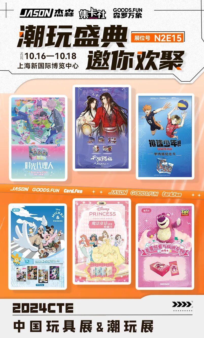 吹响潮玩盛宴的狂欢号角,10月16日-18日,CTE中国玩具展&潮玩展,杰森携集卡社、森罗万象诚邀各界人士共襄盛举,一同见证潮玩市场的产品新趋势与新机遇,共同开启这场狂欢之旅!